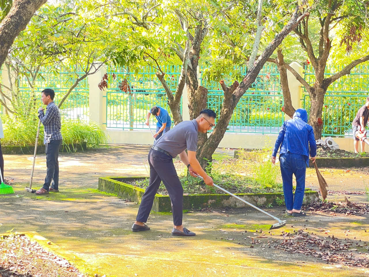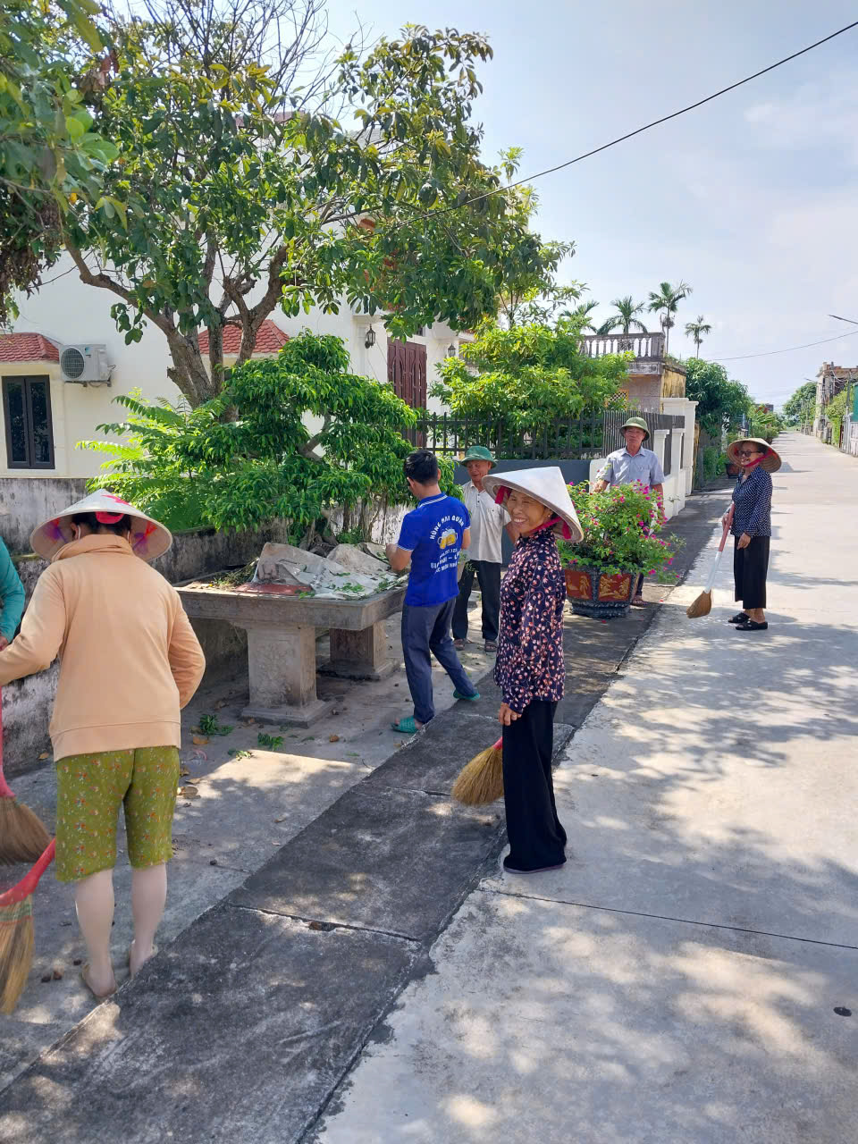 Ngay từ sáng sớm, các tuyến đường liên thôn, ngõ xóm, khu dân cư, khu vực trường học, nhà văn hóa các thôn… đều rộn ràng không khí lao động. Mọi người cùng nhau quét dọn, thu gom rác thải, phát quang bụi rậm, chặt tỉa cành cây che khuất tầm nhìn, chỉnh trang hàng rào, chăm sóc các tuyến đường cây, đường hoa, tạo cảnh quan môi trường sáng – xanh – sạch – đẹp.