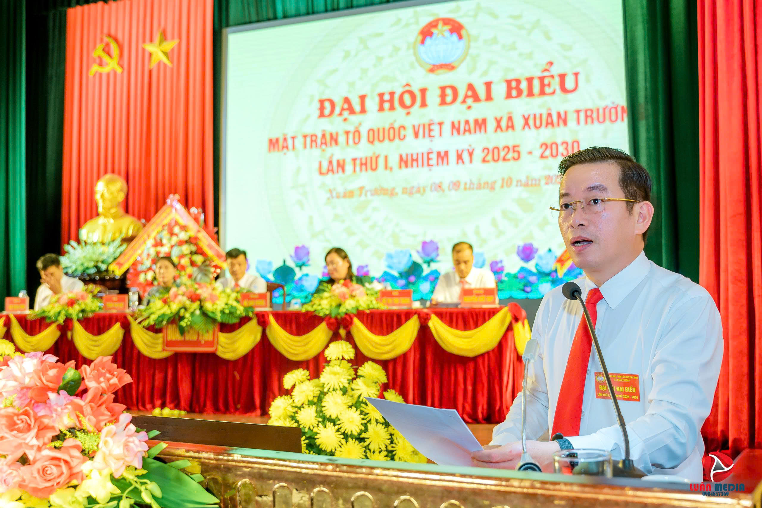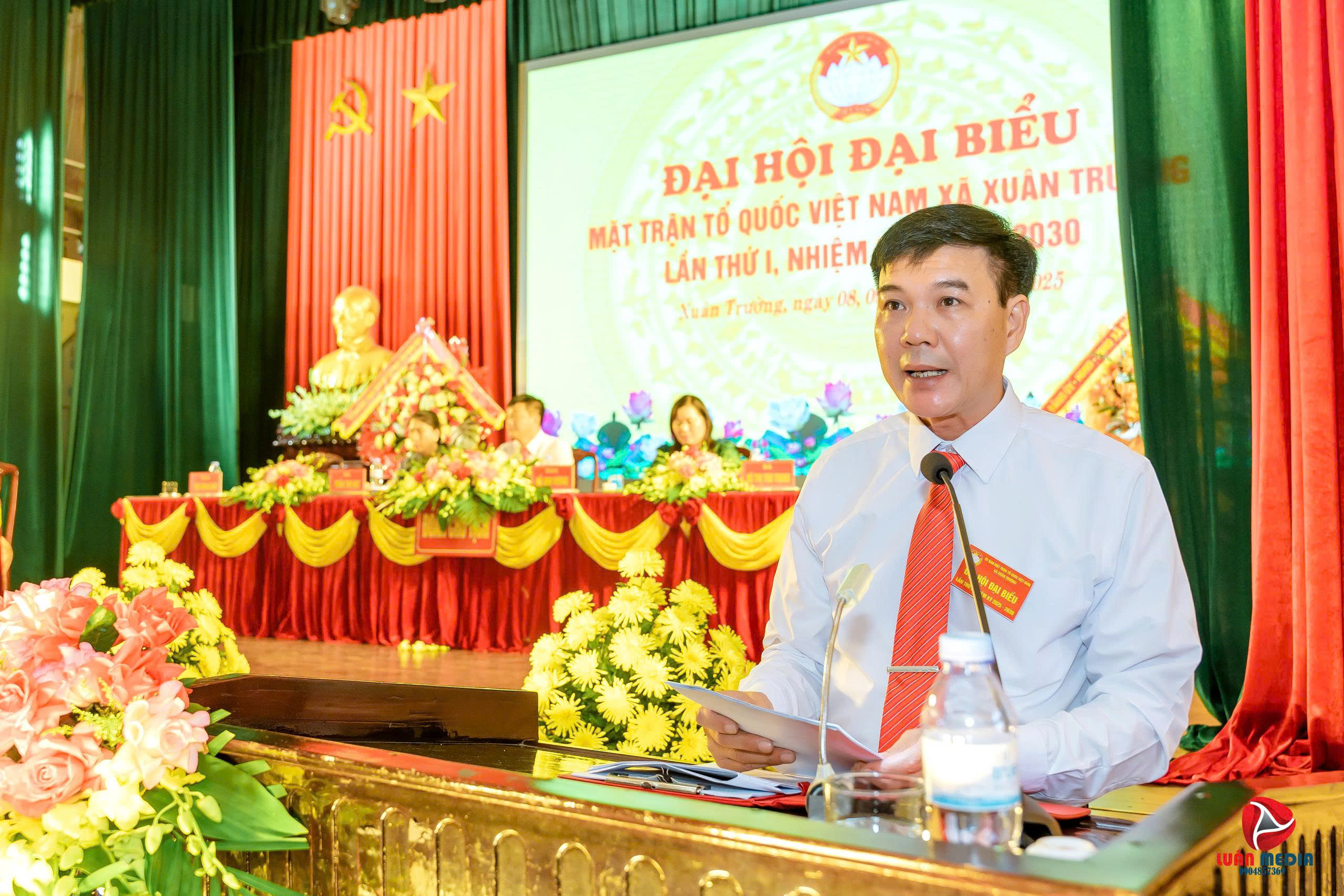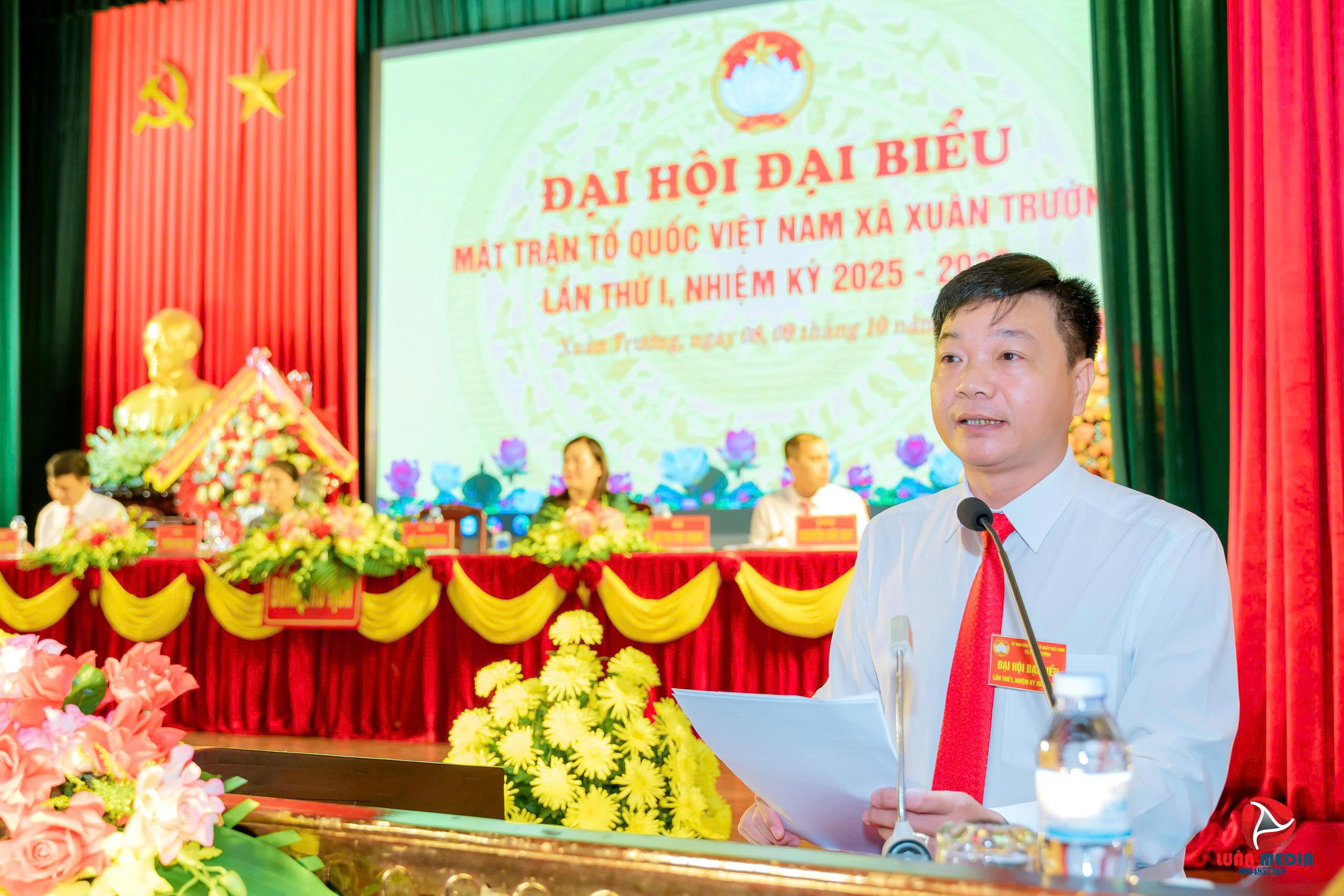 Phát biểu chỉ đạo tại Đại hội, đồng chí Trịnh Văn Hoàng- Bí thư Đảng ủy, Chủ tịch HĐND xã đã biểu dương những kết quả mà MTTQ xã Xuân Trường đã đạt được trong thời gian qua. Đồng thời nhấn mạnh: MTTQ xã Xuân Trường cần tiếp tục phát huy khối đại đoàn kết toàn dân, đổi mới nội dung và phương thức hoạt động, hướng mạnh về cơ sở, nâng cao chất lượng các phong trào thi đua, góp phần xây dựng xã ngày càng văn minh, giàu đẹp.Về những nhiệm vụ thời gian tới, đồng chí Bí thư Đảng ủy xã nhấn mạnh: MTTQ cần thường xuyên bám sát cơ sở, nắm bắt tâm tư, nguyện vọng của các tầng lớp Nhân dân, nhất là những vấn đề liên quan trực tiếp đến đời sống hằng ngày như đất đai, việc làm, an sinh xã hội... Mặt trận phải thật sự là nơi gửi gắm niềm tin của Nhân dân, là tiếng nói của Nhân dân, vì Nhân dân. Mọi kiến nghị, đề xuất của dân cần được lắng nghe, phản ánh trung thực, kịp thời, qua đó củng cố niềm tin và phát huy sức mạnh khối đại đoàn kết toàn dân. Cần khơi dậy mạnh mẽ tỉnh thần “mỗi người vì cộng đồng, cộng đồng vì mỗi người”; tiếp tục phát huy tinh thần đoàn kết, huy động sự đóng góp của các nhà hảo tâm, các doanh nghiệp, người con quê hương trên mọi miền Tổ quốc... để phục vụ phát triển kinh tế - xã hội, chăm lo đời sống Nhân dân, nhất là các đối tượng yếu thế; tổ chức hiệu quả phong trào "Vì người nghèo", xây dựng các mô hình đoàn kết giúp nhau phát triển kinh tế, giảm nghèo bền vững, để có thêm nhiều hơn những câu chuyện đẹp về tình người, về sự sẻ chia trong cộng đồng. Tăng cường các hoạt đôkiểm tra, giám sát, phản biện xã hội, qua đó khẳng định vai trò nòng cốt của MTTQ trong xây dựng chính quyền gần dân, hiểu dân, trọng dân, để thực hiện tốt nhất mục tiêu “vì Nhân dân phục vụ”.