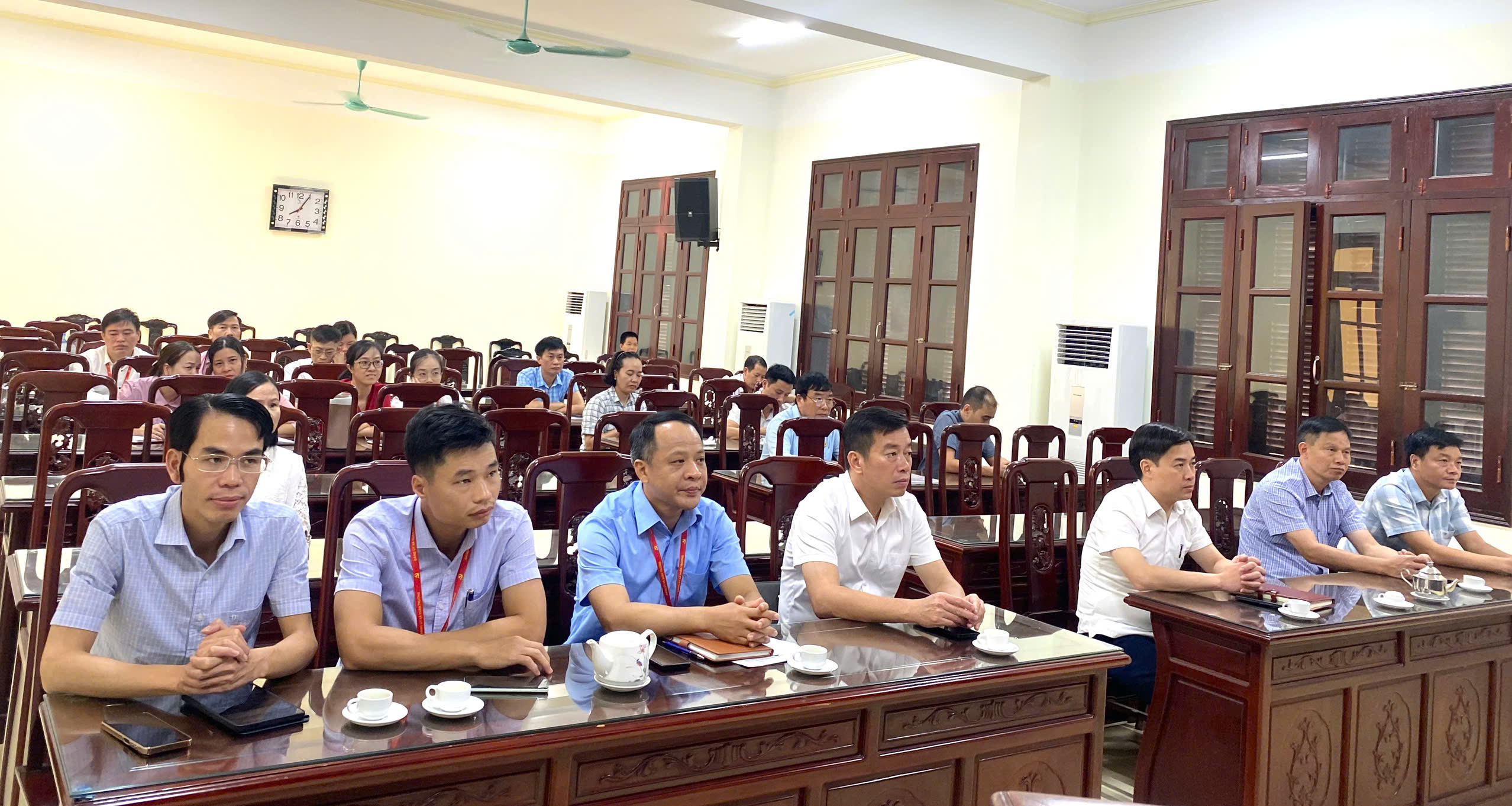 Hình ảnh các đồng chí tham dự hội nghị tại điểm cầu UBND xã Xuân Trường